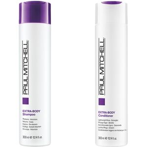 This money-saving duo for fine to normal hair contains 1 x Paul Mitchell Extra Body Shampoo 300ml and 1 x Paul Mitchell Extra Body Conditioner 300ml. This shampoo gently cleanses and volumises. It helps to repair worn-down locks, boost body and maximise shine. It makes hair more manageable and easier to brush through. The conditioner helps to detangle and add weightless volume. Leaving locks full of body, bounce and shine. Wheat-derived ingredients help to repair and prevent damage caused by blow-drying and styling and leave hair silky smooth. The duo contains Chamomile, Henna, Rosemary, Aloe Vera and Jojoba to create brilliant shine and reflection. Panthenol adds body and volume while helping repair damage. Shampoo ingredients - Sodium Chloride, Cocamide MEA, Cocamidopropyl Betaine: An effective combination of surfactants balanced to provide gentle cleansing and a rich lather. - Activated Botanical Shine Blend: A special blend of algae, aloe, jojoba and rosemary enhances shine. - Panthenol: Provides long-lasting moisture, reduces the formation of split ends, thickens hair, provides shine and helps repair surface damage. - Activated Botanical Moisture Blend: A blend of special ingredients and Awapuhi helps balance moisture and prevent dryness. Conditioner ingredients Water, Cetyl Alcohol, Dicetyldimonium Chloride, Cetrimonium Chloride, Polyquaternium-37, Propylene Glycol Dicaprylate, Ppg-1 Trideceth-6, Bisamino Peg, Hedychium Coronarium, Peg-12 Dimethicone, Hydrolyzed Wheat Protein, Cocodimonium Hydroxypropyl Hydrolyzed Wheat Protein, Algae Extract, Aloe Barbadensis Leaf Extract, Anthemis Nobilis Flower Extract, Simmondsia Chinensis, Rosmarinus Officinalis, Wheat Amino Acids, Hydrolyzed Wheat Protein Pg-Propyl Silanetriol, Hydrolyzed Wheat Starch, Panthenol, Phenoxyethanol, Methylparaben, Ethylparaben, Butylparaben, Propylparaben, Isobutylparaben, Fragrance, Benzyl Benzoate