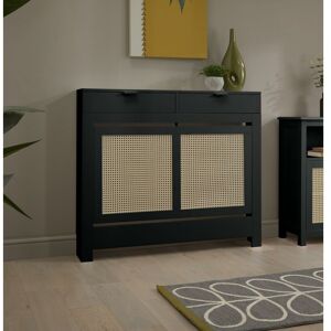 Key FeaturesBlack rattan finish3 spacious drawersEasy flat pack Black rattan finish, with drawersThis stylish black rattan storage radiator cover is not only ideal for hiding old and unsightly radiators but also features three drawers, perfect for storing small items such as your keys, books, and other small items. Easy flat pack assemblyWith easy-to-follow instructions, you’ll have this stylish storage radiator cover built and fitted in no time, even if you're a DIY novice. Please note:Flat packMade from MDF and rattan1-year guarantee