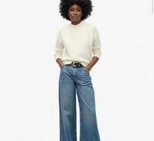 The denim staple of the season:our.Raw Hem Wide Leg Flare Jeans.This staple elevates the retro classic, creating a unique style with the raw hem finish.A quick and confident way to add a touch of authenticity to your outfit that makes it all the more vintage.Flares are back in fashion, so don´t miss the boat - add the.Wide Leg Flare Jeans.to your wardrobe today.Straight Fit.Classic for a reason - the original fit that gives you extra room throughout without being baggy or too loose fitting.About as authentic as you get.Button fastening with zip fly.Belt loops.Five-pocket design.Unfinished hem.Signature logo patch.Signature logo tab.Branded hardware.