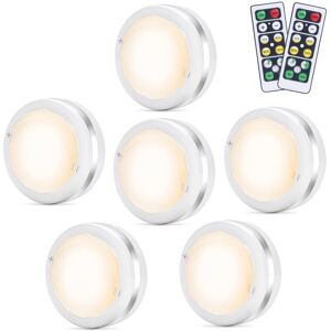 Tinor - 6pcs Wireless Remote Control led Wall Spot Light Closet Lamps Wardrobe Night Light for Staircase Mirror Kitchen Showcase Cabinet (White)