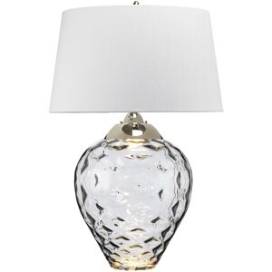 Samara's textured blown glass, classic polished nickel metal-work and beautiful hand-made fabric shades combine to form an arresting and gorgeous table-lamp. Combined with a 4-way switch, this design features independent light sources for the shade and the glass. ( GU10 supplied ) Netlighting Samara Large Table Lamp Plumtinted Glass in Purple