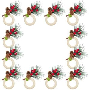 The ring part is made of natural wood with a very smooth . The decorative part is made of natural pine cones, artificial berries and pine branches, which are tightly connected with the steel ring. Very sturdy and . Not easy to break, can be used for a long time. Be it formal dinners, wedding receptions, family dinners, banquet events, everyday meals, celebrations, winter, Christmas Eve, New Year decorations, Christmas parties. Great for showcasing your desktop for family and guests Colour:Photo Color Material:Wood Package Contents: 12 x Christmas Napkin Holder Only the above package content, other products are not included. Note: Light reflection and different displays may cause the color of the item in the picture a little different from the real thing. The measurement allowed error is +/- 1-3cm.