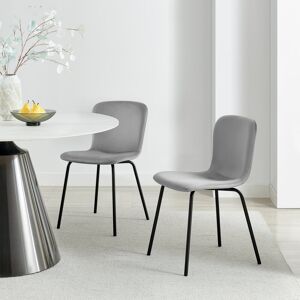 Our Aston fabric dining chairs are a simple, minimalist design of flowing curves. The chair back has a subtle winged, fluted style that hugs the body, an ergonomic design to support you and keep you comfy. The chair back gently tapers at the base before widening into the chair seat in a continuous flowing shape. Upholstered in stunning cream polyester fabric that has a linen-like weave, sat on 4 straight matte black powder-coated legs. This pair of dining chairs will look fantastic in a whole range of modern dining rooms, whatever your style. Also available in other colours and materials, so check out the full Aston chair range today. Fairmont Park Upholstery Colour: Grey