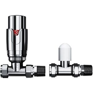 Gravahaus - Thermostatic Straight Radiator Valve & Lockshield - White Chrome