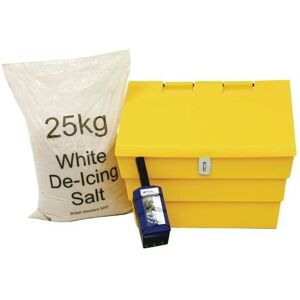 This handy winter kit contains 1 x 50 litre grit bin and 1 x 25kg bag of de-icing salt. The bin is manufactured from UV resistant polyethylene and has wide mouth for easy access. The kit also comes with a scoop to aid application of salt in icy and snowy conditions. The bin is lockable (padlock not supplied), measures W590 x D420 x H450mm and has a 50kg capacity. Ideal for car parks, driveways, paths and more.