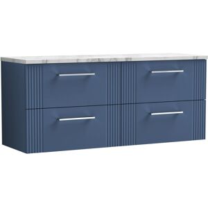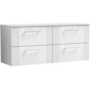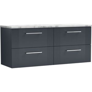 Partial Fluted 4 Drawer Wall Hung Vanity Unit with Double Polymarble Basin - 1200mm - Satin Grey Give your bathroom a fresh upgrade with the Balterley 1200mm Wall Hung Vanity Unit with Basin, a spacious and modern solution built for both function and elegance. Perfect for larger bathrooms, cloakrooms, or en-suites, this wide vanity unit provides generous storage while maintaining a clean, floating look that enhances your interior. Featuring a stylish partial fluted design and elegant satin finish, this double vanity unit provides ample storage for bathroom essentials. Supplied with a durable vitreous china basin, its soft-close drawers ensure quiet, smooth operation for a calm, organised bathroom. Product Highlights: Satin Grey Finish: Smooth satin grey finish adds sleek, contemporary style with a muted tone that’s versatile and simple to keep clean. 2 Polymarble Basin: Fitted with a durable polymarble double basin featuring two rectangular bowls with softened edges, gently curved