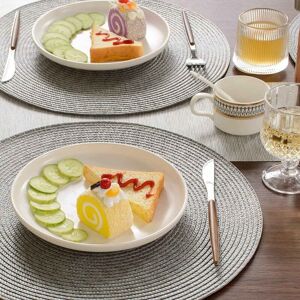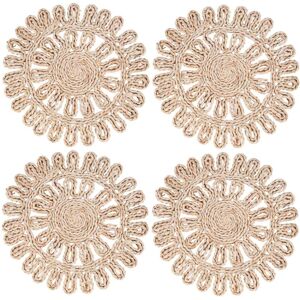 Material: hemp fibers, braided into ropes, then woven into round mats. Pack of 6. Size: diameter 18cm/ 7 inch. Beautifully Handcrafted, skillful sewing stitching, each piece is . Effectively protect your tabletop from heat and plate scratches.Used for heat insulation placemat, kitchen trivets, hot pads for countertop, place under hot dishes, pots & pans,etc. Add a sense of old fashioned style nature and texture to your kitchen. to dress up your table. Perfect for home, wedding, party, and banquet. Clean up spills immediately with a clean cloth or paper towel. Store in a dry area. spot clean. Colour: yellow-brown Material: linen Size: diameter 18cm Package Contents: 6 x Placemats Only the above package content, other products are not included. Note: Light and different displays may cause the color of the item in the picture a little different from the real thing. The measurement allowed error is +/- 1-3cm.