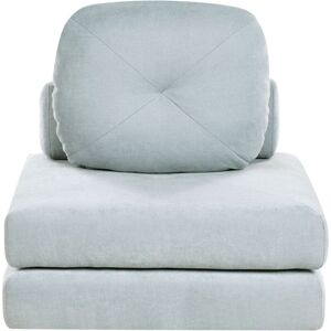 Single Sleeper Chair-Bed. Create versatile comfort with our 1-seater convertible sleeping sofa. Crafted for adaptability, it features 2 seating cushions and 2 scatter cushions, allowing you to arrange them as desired. Transform it effortlessly into an armchair, chaise lounge, or single bed to suit your needs. With removable covers on all cushions, maintenance is a breeze. Enjoy multifunctional living with this stylish solution. Details: Product Type: Sofa Bed Style: Modern General Color: Grey Shade: Light Grey Material Type: Fabric Main Material: Fabric Filling Material: Foam Material Composition: 100% Polyester Arm Style: Armless Leg Caps/ Pads: No Reclining: No Removable Cushion Covers: Yes Seat Construction: Pocket Springs Seat Foam Density: 22 kg/m3 Seats Up To: 1 Person Sleeper Function: Yes Sofa Bed Open Mechanism: Fold-Out Storage: No Dimensions: Depth: 91 cm Seat Thickness: 32 cm Seat Height: 32 cm Width: 81 cm Height: 54 cm Seating Surface: 81x91 cm Sleeping Surface: 81x182