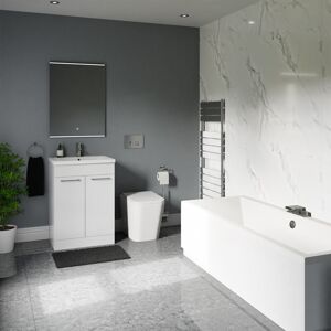 Model Number: WDB91145 Modernise your bathroom space with the Camden 1700mm Straight Double Ended Bathroom Suite including Polished Chrome High Button Back to Wall Toilet and Gloss White Vanity Unit with Polished Chrome Handles. This practical and stylish bathroom suite will give you all the essentials you need to create your dream bathroom. Relax at the end of a long day in the 1700mm x 750mm double-ended bathtub. Being sloped at both ends allows you to decide which side to relax at, and you can place your choice of basin taps in the centre of the bath for a modern design feature. The gloss white vanity unit provides a practical place for daily preening as well as storing away all your bathroom essentials, simply add a vanity mirror and basin taps to create the perfect 'you' space. Finishing the suite is a modern toilet with soft-close seat, concealed cistern and polished chrome flush plate, which when all combined will create a super sleek and modern look in the room. Key features