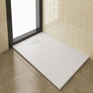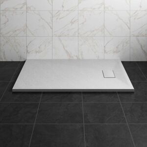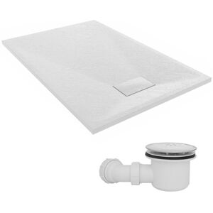 ELEGANT White Slate Effect Lightweight Slate Shower Base Size: 1200x800x30mm,Extra flat,Surface or recessed installation. Lightweight slate,heat resistance,corrosion and wear resistance (SMC composites). Made from a patented mixture of resin and filler for super strength,with slate textured finish,an antibacterial and anti-slip gel coating,offers a soft and natural touch feeling Special hidden centre waste design,Matches shower tray covering and long lasting to prevent stains. Back of the tray has a net design framework supporting structure,for better weight endurance and durability. Waste is included,size:Ø90mm.materail:ABS. Kit Content : Shower Tray free 90mm waste trap Stainless steel drain cover Dimension Waste Trap