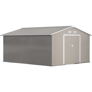Keep your garden equipment and outdoor essentials locked away securely with metal garden sheds with base from Outsunny. It's made from colour steel for enduring reliability. With a sloped roof sitting on the top to help prevent water stagnating and rust forming, this motorbike shed is finished with a protective weather coating and floor foundation so you have everything you need to install this large garden shed when it arrives. The perfect home for all your outdoor tools and gear.Features:Serve as a tool shed, a bike shed, a mobility scooter shed, or a garden bin storageSpacious enough for storing all your outdoor tools, equipment and gardening gear in this galvanised shedMade from colour steel with a top coat for durability and protection against the elementsSliding double doors for easy access this metal storage shedSloping roof for water to roll to floor, helping to prevent rust build-upFour ventilation to air to pass through this bike storage metal shedFloor foundation included, with all parts pre-cut and pre-drilledplease use gloves when installingAssembly required