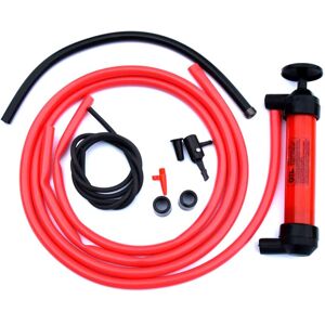 Safely and easily transfer gasoline and other fluids through a siphon intake and discharge system Eliminates the need to siphon hazardous chemicals by mouth Includes clip to fit an air pump function for inflation Ideal for home, industrial, marine and agricultural use