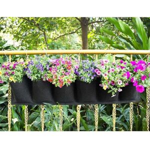 about this item 6 POCKETS HANGING PLANTING BAGS: 6pcs planting bags suitable for planting flowers, vegetables, strawberries, hanging plants, you can put a variety of herbs/plants once to decorate the indoor and outdoor courtyard balcony WATERPROOF BOTTOM PLANTER: Black water-retaining felt material with a waterproof bottom, create a perfect soil condition, excess water will drain automatically, used for indoor and outdoor, biodegradable, anti-corrosion and durable to use, you don't have to worry about the walls getting wet LARGE SPACE DIVIDED DESIGN: Each planting bag has 6 flat pockets, gives you enough space to add different plants, houseplants or vegetables in a small space, apartment or limited outdoor space CONVENIENT TO HANGING: Lightweight bags can be easily mounted on a wall using reinforced metal grommets for added strength, no worry about them falling down Beautify Your Garden: Perfect plant grow bags, transforming any unused or ugly area into a vibrant and lush vertical