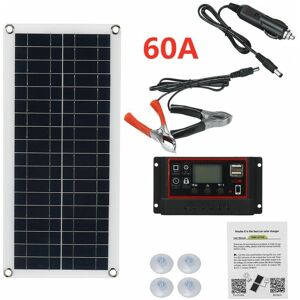 Product Description Material: Polysilicon Color: black Power: 30W Voltage:12V Controller current: 60A Size:43x20cm Features: Solar panel, environmental protection, saving Used to charge mobile phones, MP3, PAD or other USB charging devices. Easy to use Outdoor solar panels, can effectively convert sunlight into electricity. Application: camping, travel Package include: Solar Panel with Controller: 1 x Solar panel 1 x Controller 1 x Clip 1 x Cigarette lighter 4 x Suction Cups Warning: 1.Due to manual measurement, please allow 1-3cm error, thank you 2.Due to shooting problems such as light, there will be chromatic aberration, please be careful.