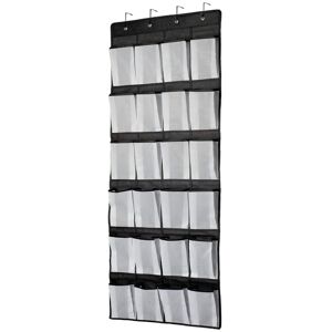 Total 24 spacious mesh pockets, can be hung on a standard door or closet rod. Comes in a storage bag as a gift Dimensions: 55 x 21.6 inches (140 x 55 cm), each pocket measures 8.66 x 5.12 x 4.7 inches (22 x 13 x 12 cm), each pocket can hold an adult low shoe or 2 slippers 4 hanging hooks: the hook is suitable for doors less than 1.7 inches thick, the rounded design ensures that the metal hooks will not sink into the wood of the doors Mesh pocket design: thick fine mesh fabric is sturdy and durable, which makes it easy to see the items in the pockets Perfect for saving space: ideal for storing shoes, socks, toys, beauty accessories and more things. Can be hung in bedroom, closet, bathroom, dorm and so on, to ensure a clean and tidy environment