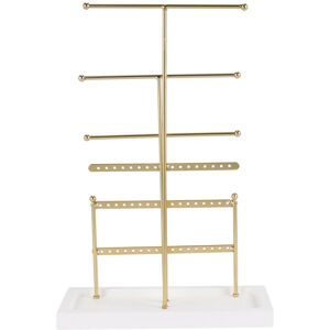Equipped with 6 tiers jewelry branches, this jewelry organizer provides a large capacity to hold your jewelry. The tier bars above are arranged in a staggered order, which are very suitable for hanging necklaces and bracelets without tangling and knotting. The 3-tier bars below with earring holes is great for holding types of earrings. The base is made of natural solid wood with high durability and stable structure, which is sturdy enough to support the 6 layers bars above and it is not easy to sway. The tray is large enough to hold small objects such as rings, lipsticks, headbands, hairpins, etc. With classic iron frame and tray combination, this jewelry tree stand shows eye-catching and elegant, adding charming accent to your dresser, perfectly match room decor. Furthermore, It only takes up very little space on the dresser but can hold almost your jewelry. This jewelry stand is detachable and it is very easy to install. You only need to insert the front two-layer iron rack directly