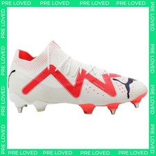 Elevate your game to the next level with the Puma Future Ultimate MxSG Men's Green Football Boots. Engineered for players who demand top-tier performance, these boots blend cutting-edge technology with sleek, modern design to help you dominate the pitch. Key Features: -Adaptive FUZIONFIT360 Upper: The revolutionary FUZIONFIT360 upper combines engineered mesh and a supportive knit for a secure, adaptive fit. It stretches and flexes to provide optimal comfort and lockdown, ensuring your feet stay snugly in place during high-intensity play. -Advanced GripControl Pro: Strategically placed GripControl Pro coating on key areas of the boot enhances ball control, allowing you to handle the ball with precision and confidence in any condition. -Dynamic Motion System Outsole: The lightweight, durable outsole features a mix of conical and bladed studs, designed for maximum traction and stability on soft ground surfaces. This innovative design enables quick pivots and explosive acceleration, giving you the edge over your opponents. -Comfortable Insole: The removable, cushioned insole delivers superior underfoot comfort and shock absorption, so you can maintain peak performance from the first whistle to the final minute. -Lightweight Construction: Designed to keep you light on your feet, these boots combine high-performance materials with a streamlined design to minimize weight without compromising durability or support. Take your football skills to the ultimate level with the Puma Future Ultimate MxSG Men's Green Football Boots, where innovation meets performance for unparalleled play on the field.