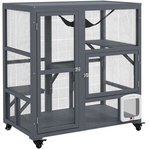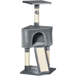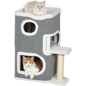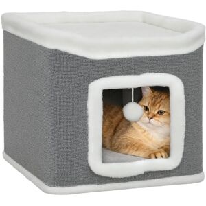 Is your city flat leaving your cats feeling cramped and stressed? This PawHut cat tower transforms limited floor space into a playground. Your feline friend can find their own private sanctuary on this cat house. With soft plush edges on the top bed and entry for comfortable access, your cats can safely explore their new domain, bringing joyful adventure and peace back to your home. Specifications: ● Colour: Grey, White ● Material: Particle Board, Carpet Fabric (100% Polyester), Plush (100% Polyester) ● Overall Dimension: 41W x 41D x 40H cm ● Inner Size: 39.5W x 39.5D x 29H cm ● Door Hole Size: 18W x 18H cm ● Top Cat Nest Size: 39.5W x 39.5D x 4H cm ● Item Label: D30-944V00GY Features: ● A cave offers private room for cat ● Entrances are wrapped in soft plush, ensuring safe and comfortable access ● Built with thick particle board, providing a secure play platform ● Includes hanging toy ball, keeping your cat entertained and active ● Top perch with raised edges creates a cosy and