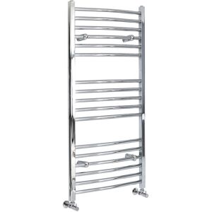 GENERAL DESCRIPTION The 700 x 400mm curved chrome heated towel rail is a budget-friendly heating solution suitable for various bathroom styles. It features a high-quality chrome finish that ensures durability and a lasting shine. This product comes with a 10-year guarantee against water leaks and is available in multiple sizes, colors, and profiles. TECHNICAL SPECIFICATIONS Stylish curved bars Number of bars: 12 (3+4+5) 350mm Pipe Centres Durable high quality Chrome finish Connects to central heating system or can be converted to dual fuel (Electric Element sold separately) 10 year guarantee against water leaks Fixing pack included with plugs and vents Pressure tested to 10 bar, maximum working pressure 7 bar Manufactured to BS EN 442 Heat output: 564 BTU INSTALLATION It is recommended to have a qualified plumber install this item. OTHER INFORMATION Excludes: Valves Images are for illustration purposes; colors may vary depending on device screen and lighting.