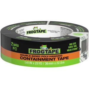 Shurtape FrogTape® Containment Tape for holding poly-sheeting, drop cloths, tarps and other protective coverings when creating high-performance containment systems. Ideal for tasks such as painting, cleaning, sanding, mould remediation, asbestos removal and more. A premium grade painter's tape adhesive on one side for 21-day clean removal and, on the other, an aggressive adhesive which securely holds poly-sheeting and other protective coverings in place. May be used on a variety of surfaces, including drywall, wood trim, glass, plastic and vinyl.