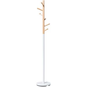 White Coat Holder. Minimalistic design and a striking natural look are trademarks of this coat stand with a sturdy steel wrapped concrete plate. Featuring 4 pinewood hooks, the rack is perfectly suited to store all your coats, jackets and hats. It is a functional, understated addition to the hallway, bedroom or living room in a modern or Scandinavian style. Details: Product Type: Coat Stand Style: Retro General Color: White Material Type: Metal Main Material: Steel Additional Material: Pine Wood Finish: Powder Coated Hooks: 5 Dimensions: Base Dimensions: 30x30 Depth: 30 cm Width: 30 cm Height: 170 cm Weight: 5.5 kg Weight Capacity: 10 kg Offer Includes: 1 x Coat Stand Key Features: Trendy Design and Colour, Decorative Yet Functional, Blends Well with Any Decor, Solid Workmanship, Uncomplicated and Self-Sufficient Assembly Assembly Information: Full Assembly Required. 5-15 min. Maintenance tips: Steel: 1.Clean with a mild cleaner and soft cloth, wipe dry afterwards 2.To avoid scratches