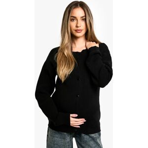 Boohoo Womens Maternity Fine Knit Crew Neck Cardigan - Black Polyamide - Size 8 Uk
