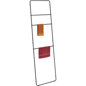 This black metal towel ladder will help you keep your home tidy. The slimline bathroom ladder with three rungs can be positioned as desired to save valuable space. It can also serve as a decorative clothes ladder, allowing you to store garments stylishly. The sturdy leaning ladder boasts a timeless design, perfectly complementing modern interiors. For added safety, an anti-tip protection device can be attached to the wall if needed. Towel Ladder in Detail - Dimensions H x W x D: approx. 180.5 x 55.5 x 1.5 cm - Load capacity: approx. 8 kg - Weight: approx. 1.2 kg - Material: Steel - Colour: Black Metal Decorative Ladder - Adds a modern touch to your bathroom or bedroom - Ideal for towels, clothes, blankets, and accessories - Can be easily positioned by leaning against the wall - Made from durable steel for long-lasting use - Non-slip design with floor buffers - Includes anti-tip protection for optional wall installation