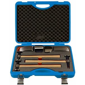 Set of 7 popular body repair tools for use on steel panels. Can also be used on aluminium panels if kept separate to avoid cross-contamination. 3 x body hammers made from 1055 medium carbon steel with hickory handles: cross pein & finishing, shrinking, pick & finishing. 4 x polished dollies made from induction hardened, 1055 grade, medium carbon steel. Professional quality. Packed in a blow mould case with EVA foam tray. Aluminium specific Body Hammer & Dolly Set also available, please see Part No. 92430.