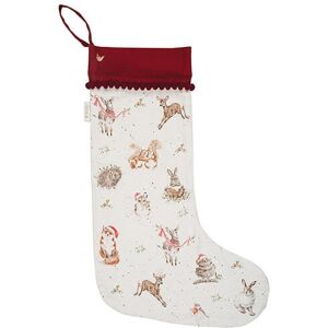 Celebrate the season with this beautifully crafted Wrendale Designs ‘Winter Wonderland’ Christmas Stocking, featuring Hannah Dale’s much-loved woodland animal illustrations. Printed on a natural cotton-linen blend and trimmed with rich red edging and playful pom-poms, this stocking brings country charm to any festive setting. A metallic wren embroidery adds a special touch, while the handy hanging loop makes it simple to display. Perfect for Wrendale collectors or anyone looking to add character to their Christmas décor. Dimensions: 22cm (L) x 60cm (W). Main stocking: 70% cotton, 16% linen, 14% viscose. Trim: 100% polyester.