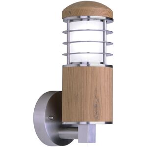 Netlighting Poole 1 Light Outdoor Bollard Light Stainless Steel Teak IP55 E27 in Brown Brown