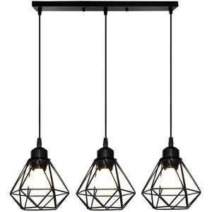 • Elegant and modern geometric diamond cage chandelier, elegant retro design gives your interior a unique fashion sense. • Surface anti-corrosion and rust-proof, high-temperature painting, does not fade easily, quality assurance. • All installation accessories are already included in the package. Installation only takes a few minutes and is very easy to use. • The chandelier is ideal for living rooms, workplaces, kitchens, stairs, corridors, exhibition halls, bars, etc. Specifications: • Product: 3 lights cage pendant light • Style: Industrial Style • Color: Black • Lampshade (diameter * height) 16cm * 17cm • Ceiling diameter: 50 cm • Adjustable cable: 100 cm • Recommended room size: 10-15 square meters • Voltage: 220 V, suitable for all E27 spiral bulbs (without light bulb) • Lighting specifications: Power: 25-60 W (60 W maximum) Package includes: • 1 x 3 lights cage pendant light