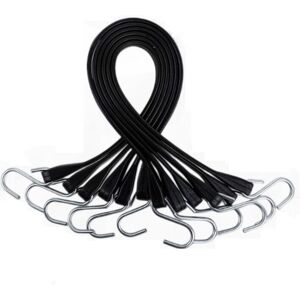 Multi-purpose tarpaulin tensioners. These tensioners with hooks allow you to attach a tarpaulin to a trailer or truck, hang a pool cover, hold an object in the trunk of your car, etc. These elastic tensioners are particularly resistant. The quality of the elastic components offers better resistance to traction and shearing. The great new feature of these tarpaulin tensioners is that they are flat! This means that they can conform to any shape as precisely as possible. Technical information Material: rubber Color: black