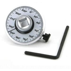0 to 360° 1/2 square Very precise tightening Essential for torque wrenches This is a tool that measures the angle of rotation made by the screw during tightening. It is positioned between the tightening sleeve and the drive square of the tightening wrench. Its principle is based on the tightening angle and not on the force, it allows for the most precise tightening, regardless of the parasitic forces (a cylinder head gasket tightened over its entire surface at the same angle will have uniform crushing). A wedging handle allows this angle wrench to be fixed, before and during tightening. The wedging rod can be fixed in any desired position thanks to its threaded wheel. Technical characteristics: • 1/2 drive square = 12.7mm.