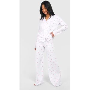 Charming bow print pyjama set Soft jersey fabric for ultimate comfort Long-sleeved button-up top with notched collar Wide-leg trousers for unrestricted movement Petite fit designed for shorter frames Indulge in a night of sweet dreams with this adorable pyjama set from Boohoo. The all-over bow print adds a playful touch to your bedtime routine, while the soft jersey fabric ensures a cosy night's sleep. The long-sleeved top features a classic button-up front and notched collar, perfect for those chilly evenings. Paired with wide-leg trousers, this set offers both style and comfort, allowing for easy movement as you lounge or sleep. Ideal for petite frames, this pyjama set is a must-have addition to your nightwear collection. Whether you're having a relaxing night in or hosting a slumber party with your besties, these pyjamas will keep you looking cute and feeling comfortable all night long.