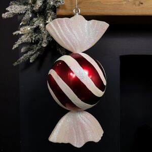 Deck the halls this Christmas with this attractive stripe candy sweet decoration. This hanging bauble decoration will make a perfect addition to any room and is suitable to be hung anywhere around your indoor space for the Christmas tree or any other festive display. With a Red and White stripe design this sweet decoration is sure to bring the magical feeling of Christmas to your home and those who visit this year. The candy stripe bauble has a Silver hanging loop allowing you to place this anywhere you like and features a shimmer of glitter for that extra sparkle. Dimensions: Length: 50cm Width: 21cm