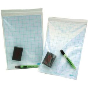 Ideal for use with Show-me boards, these handy grip seal bags are perfect for making up individual whiteboard class sets. The clear plastic bags have a grip seal that can be used again and again. The bags are made from 45 micron polyethylene. This pack contains 100 bags measuring 230 x325mm (suitable for use with A4 unframed Show-me boards).