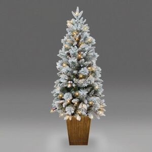 PROFESSIONAL ENTRANCE TREE- Standing at 5 feet tall, this artificial Christmas tree trimmed with holy ornaments and lights will help you to build a warm welcoming place. In this way, you can illuminate your front door and leave good impression for your guests. DENSE BRANCHES WITH SNOW- This Xmas tree has a full-bodied and dense appearance, which is formed by 356 individually crafted branch tips. The leafy branch tips are covered with thick snow powder, simulating the sense of wintry Christmas, and several pine cones and red berries make the tree full of attractiveness. PRE-STRUNG LED LIGHTS- This pre-lit Xmas tree with 100 warm white LED lights can make the tree shining in both day time and night time. Hence, which will make your welcoming place a conspicuous guidepost for your family and friends. Multi-function (8 Modes): You can control how you want the lights with the multi-function- waves, sequential, slogs, chasing/flash, slow fade, twinkle/flash, steady on and combination. WIDE