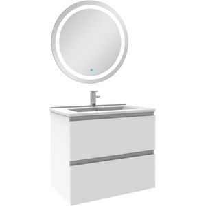 Sky Bathroom - 610mm Bathroom Cabinet Set White Vanity Unit with Basin 2 Drawers + Round led Bathroom Mirror c