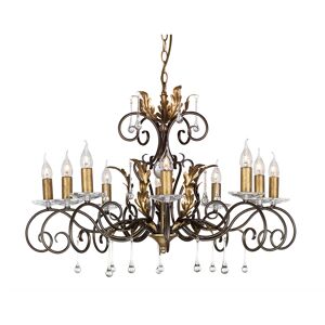 This handmade range features traditionally forged scrolls and antiqued oak leaves. Fittings are dressed in clear glass drops and cut glass sconces and are available in two finishes; the Bronze/Gold Patina and Black/Silver. The 3 light fitting is convertible to semi-flush. The matching fittings allow you to create a lighting theme throughout the room. Netlighting Amarilli 10 Light Chandelier Bronze Gold Floral Leaves Design E14 in Brown