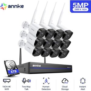 Key features: · 5MP video viewing, recording and playback · Wi-Fi access, real plug-and-play system · Advanced H.264+ Video Compression · Up to 16 channels, 8MP wireless IPC access · Two-way voice intercom, built-in microphone and speaker · Instant motion detection email alert · HDMI and VGA outputs for TV, monitor and computer · Simple-to-use app for mobile monitoring · True day and night continuous protection · Up to 100ft night vision with Smart IR · IP66 weatherproof indoor and outdoor cameras Description du produit 16CH 8MP Scalable NVR Up to 16 channels can meet your subsequent expansion of monitoring needs. Stable & Fast Dual-band WiFi Flexible choice of 2.4/5.8 GHz WiFi networks for stable performance. 5MP Super HD Whether preview, video recording or playback, you can see it clearly with details. Clearly Night Vision You can see up to 100ft even in low lights. Wide Monitoring Range Support auto-cascading and wireless relay, enhance connection distance and transmission