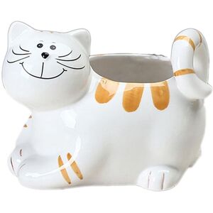 Type: Ceramic Cat Flower Pot Type: Planter Used with: flower/green plant Style: Cartoon Application scene: home furnishings, greening projects, hotels, flower nursery production, offices, family gardening, balcony gardens, shopping malls. color: white and yellow Material: ceramic size: 15x11.55CM Package Contents: 1 x Ceramic Flower Pot Only the above package content, other products are not included. Note: Light shooting and different displays may cause the color of the item in the picture a little different from the real thing. The measurement allowed error is +/- 1-3 cm.
