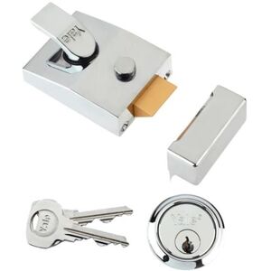 The Yale 89 series deadlocking standard nightlatch security locks are some of the most widely-used front door latches. They are key operated from the outside and lever handle operated from the inside. The latch automatically deadlocks on closing the door and the snib function (bolt hold back button) enables the latch to be held back. The inside handle can also be deadlocked by a reverse turn of the key in the cylinder giving additional security (when deadlocked in this manner the latch cannot be opened from the inside, only from the outside with the key). Supplied with 1109 Cylinder. Finish: Brasslux, Chrome or Dark Metal Grey (DMG). The 89 series security nightlatches have a 60mm backset, this is the measurement from the edge of the door to the centre of the keyhole.