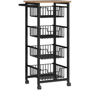Easy extra space with this HOMCOM kitchen island. With four mesh baskets, there's plenty of room for holding and organising a variety of foods plus the wood-effect countertop offers extra holding and preparation space. This kitchen storage trolley glides easily with wheels, complete with two brakes so it stands steady in place whenever you need. Specifications: ● Colour: Oak, Black ● Material: Steel, MDF ● Overall Dimension: 49.5W x 31D x 91H cm ● Top Size: 43W x 31D cm ● Storage Basket Size: 34W x 30D x 10H cm ● Bottom to Floor Height: 8 cm ● Weight Capacity: 22 kg (total), 10 kg (top), 3 kg (basket) ● Item Label: 801-379V01AK Features: ● Four baskets for storage. Mesh for aeration and no liquid build-up ● Four wheels to move around easily. Two with brakes to stand in place ● Handrail to move around easily ● Powder coated steel frame for a strong core ● Wood-effect tabletop for an elegant touch ● Maximum load 22 kg, assembly required