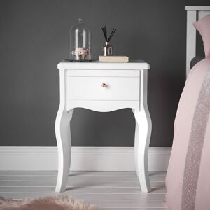 Sorrento Collection - White Bedside Table with Drawer Rose Gold Knob Vintage Design The new Sorrento collection showcases modern pieces fused with a vintage twist. This single side table is the perfect mix of modern and elegance. The pull-out drawer offers storage for your small essentials and features an on-trend rose gold knob to compliment both colour-ways; fresh white or dove grey. This beautiful side table supported by its chic curved frame will be complete by displaying your favourite accessories or bedroom essentials on it. It will look perfect in your bedroom, living or dining room or even your hallway. Wherever you decide to put it, it’s sure to bring sophistication to your home. Modern side table with a vintage twist sat on ornate curved legs The drawer is styled with an on-trend rose gold knob which compliments both the fresh white and dove grey finish Create a space you will love to be in whilst adding understated elegance to your home décor with this chic collection piece