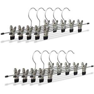 Thanks to these awesome set you can finally organize your wardrobe! The 2 clamps per hanger are fixed to the rail but can still be adjusted, which gives you the possibility to use these metal coat hangers very flexibly. Just hang up baby clothes, boots, skirts or trousers - No problem at all! Whatever task lies ahead: The rubbered clamps are firm in their grip and still leave no marks on your clothing. Non-Slip Coat Hangers Details - Pack of 50 - Size per hanger: H x W x D: approx. 9 x 35.5 x 2.5 cm - Material: Chrome-plated iron, rubber - Weight: approx. 50 g - Colours: Silver, black Trouser Hangers with Hooks - For jackets, trousers, skirts etc. - Versatile - 2 adjustable clips - Sturdy square rod - Rubber-coated clamps Included in Delivery - 50 x Clothes Hangers - Decorative items shown in product photos are not included