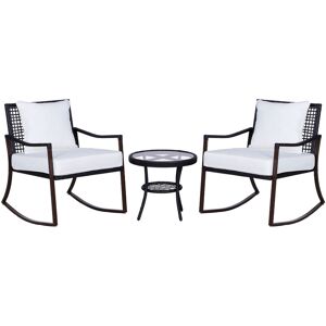 This Outsunny rocking chair set is an ideal addition to your outdoor garden patio. The set consists of 2 rocking chairs and a coffee table with tempered glass. Made from a steel frame and covered with PE rattan to match any indoor or outdoor dcor. The set comes complete with 8cm padded cushions for your comfort. Kick back, relax, and enjoy the smooth rocking glide while indulging yourself in your outdoor space.