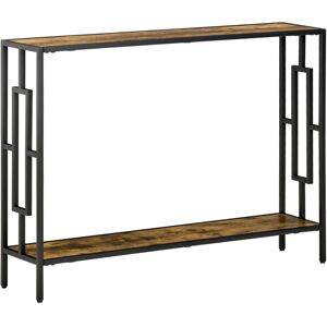 Bring a beautiful finishing touch to your home with this console table from HOMCOM. Made from metal for a supportive core structure, it's crafted with a unique and art-deco inspired pattern on the side: sure to catch attention instantly. Two particle board shelves on the top and bottom give lots of holding room, both covered in melamine for a smooth finish - ideal for busy and hectic lifestyles. A unique take on a traditional furniture staple. HOMCOM Industrial Console Table w/ Storage Shelf Narrow Dressing Desk for Hallway in Brown
