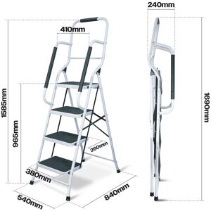 Make your life and work easier with this functional 4-step ladder! The widened pedal with nonslip design is sturdy enough to support your feet. And the rubber handle helps you keep balance when stepping and working on the ladder. Moreover, the step ladder can be used as a storage shelf to meet your different needs and keep your daily items in order. With sturdy steel frame and upgraded bottom rail, our step ladder is strong enough to hold up to 150 kg. It features higher stability with non-slip foot pads. Other than that, the quick-folding and lightweight design is easy to store and transport. WFX Utility
