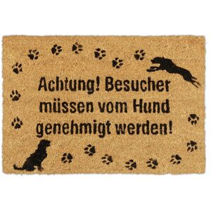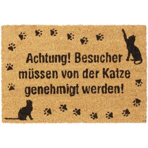 This original doormat takes the humour out of greeting your guests with the inscription Moin. But the doormat scores not only visually. Thanks to the natural coconut fibres, the door mat is robust and durable. The environmentally friendly raw material is characterised by weatherproof properties and gives the doormat a natural look. The underside is made of non-slip PVC so that the mat stays in its place. Note: Coconut is a natural product, which is why there may be slight variations in the structure and colour of the fibres. Coir doormat in detail - Dimensions H x W x D: approx. 1.5 x 60 x 40 cm - Weight: approx. 1.4 kg - Material: Coconut fibre, PVC - Colour: Natural, black - With German slogan Non-slip door mat for the home - Suitable for indoor and outdoor use - Dirt is kept out of the home - Natural coconut fibres are robust & weatherproof - Underside has non-slip effect thanks to coating - Fun gift idea for German speakers