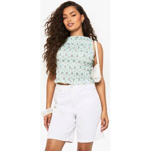 Delicate floral textured fabric with intricate ruching detail throughout Feminine V-neckline with adjustable spaghetti straps for the perfect fit Smocked bodice with charming tie-front detail Floaty mini-length skirt with gathered design for added movement Lightweight, breathable fabric ideal for warm-weather styling This enchanting mini smock dress captures carefree summer style with its delicate floral texture and thoughtful ruched detailing. The smocked bodice creates a flattering silhouette while the tie-front adds a playful touch to the feminine V-neckline. Style with white strappy sandals and a mini handbag for daytime gatherings, as seen on our model. For cooler evenings, layer with a lightweight denim jacket and switch to chunky trainers for an effortlessly cool contrast. The versatile design transitions beautifully from casual brunches to garden parties - simply customise your look with layered jewellery for added personality. This Boohoo dress embodies youthful charm while offering comfort and ease, making it a wardrobe essential for the fashion-forward woman who values both style and practicality for her everyday social occasions.